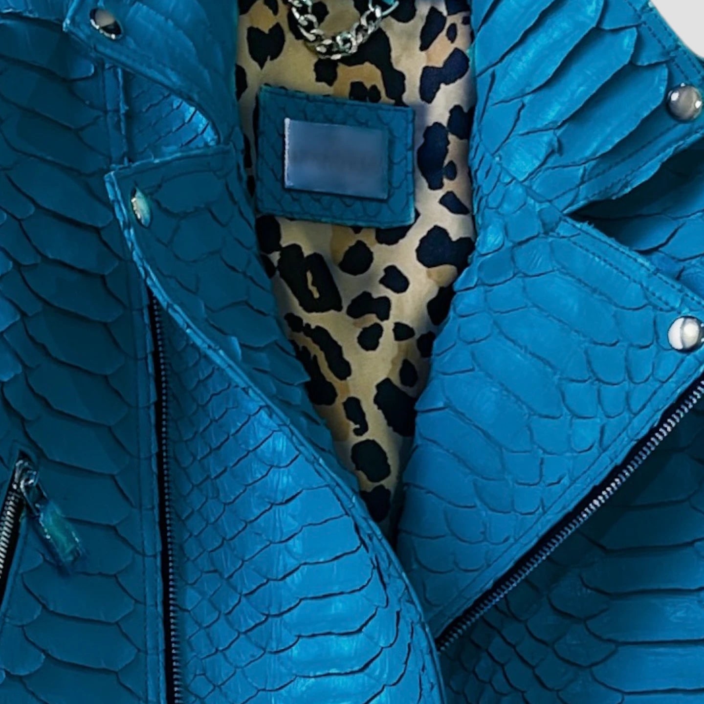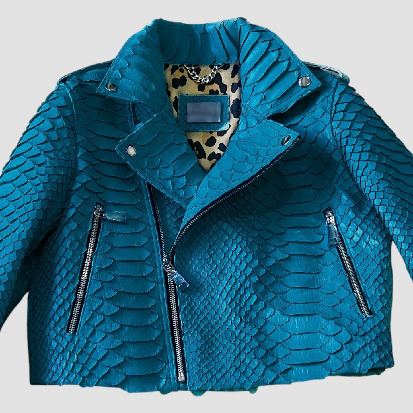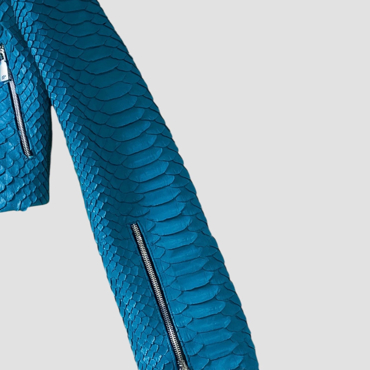 Crafted from rare KING python leather, this jacket features the largest flakes of any python leather, enhancing its luxurious and exclusive appeal.