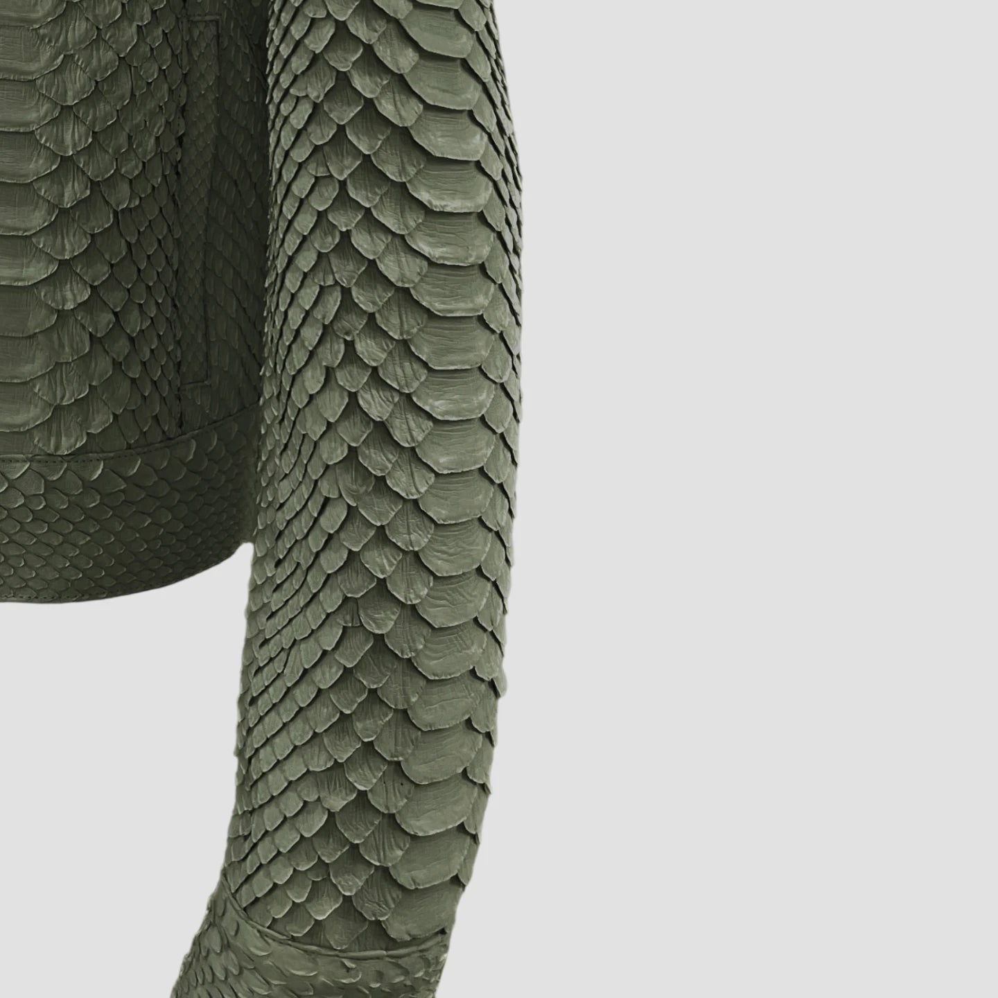 Crafted from rare KING python leather, this jacket features the largest scales of any python leather, enhancing its luxurious and exclusive appeal.