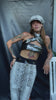 A woman wearing black boots and a stylish python leather jacket, showcasing her edgy fashion sense.